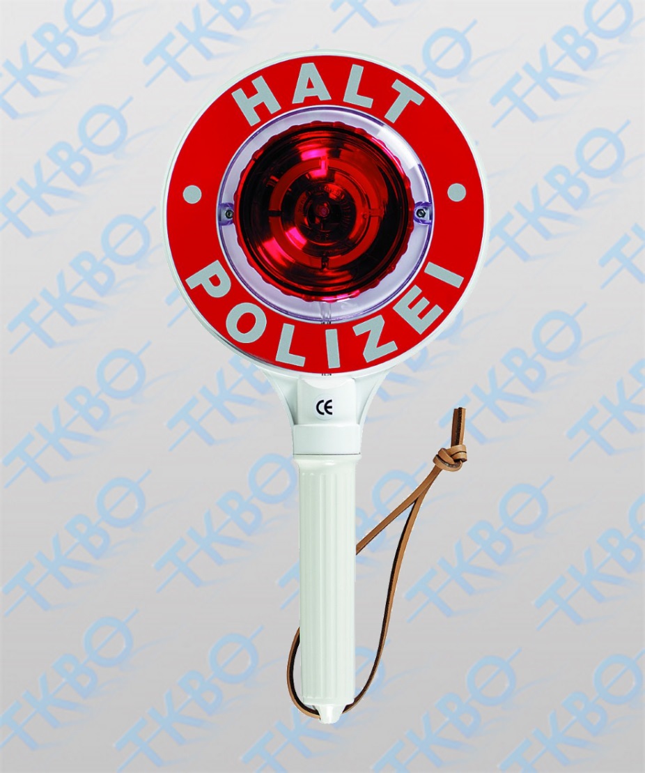 Besonders schlagfester Anhaltestab mit zwischen Stegen liegendem, wasserdichtem Druckschalter. Rückseitiges Fenster zur Funktionskontrolle und Dokumentenbeleuchtung .