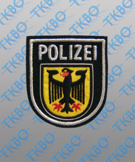 Aufwändig in Handarbeit hergestelltes Abzeichen der Bundespolizei aus Metallfäden auf Uniformtuch. Bitte beachten Sie unsere Bestellvoraussetzungen auf der Startseite.