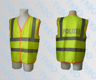 der Klasse 2 nach EN471 mit reflektierendem Streifen auf Brust und Rücken sowie Rückenaufdruck z.B : Polizei , Feuerwehr , THW etc.